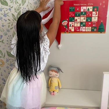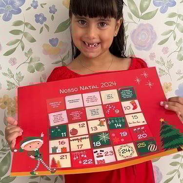 Desde então, esse calendário se tornou uma tradição especial em nossa casa, e a Júlia espera ansiosamente pela chegada de dezembro para que possamos começar tudo de novo. Esses momentos nos aproximaram ainda mais como família. Foi dessa alegria que surgiu o desejo de compartilhar essa tradição com outras famílias, para que elas também possam criar memórias inesquecíveis e cheias de amor nessa época tão especial.